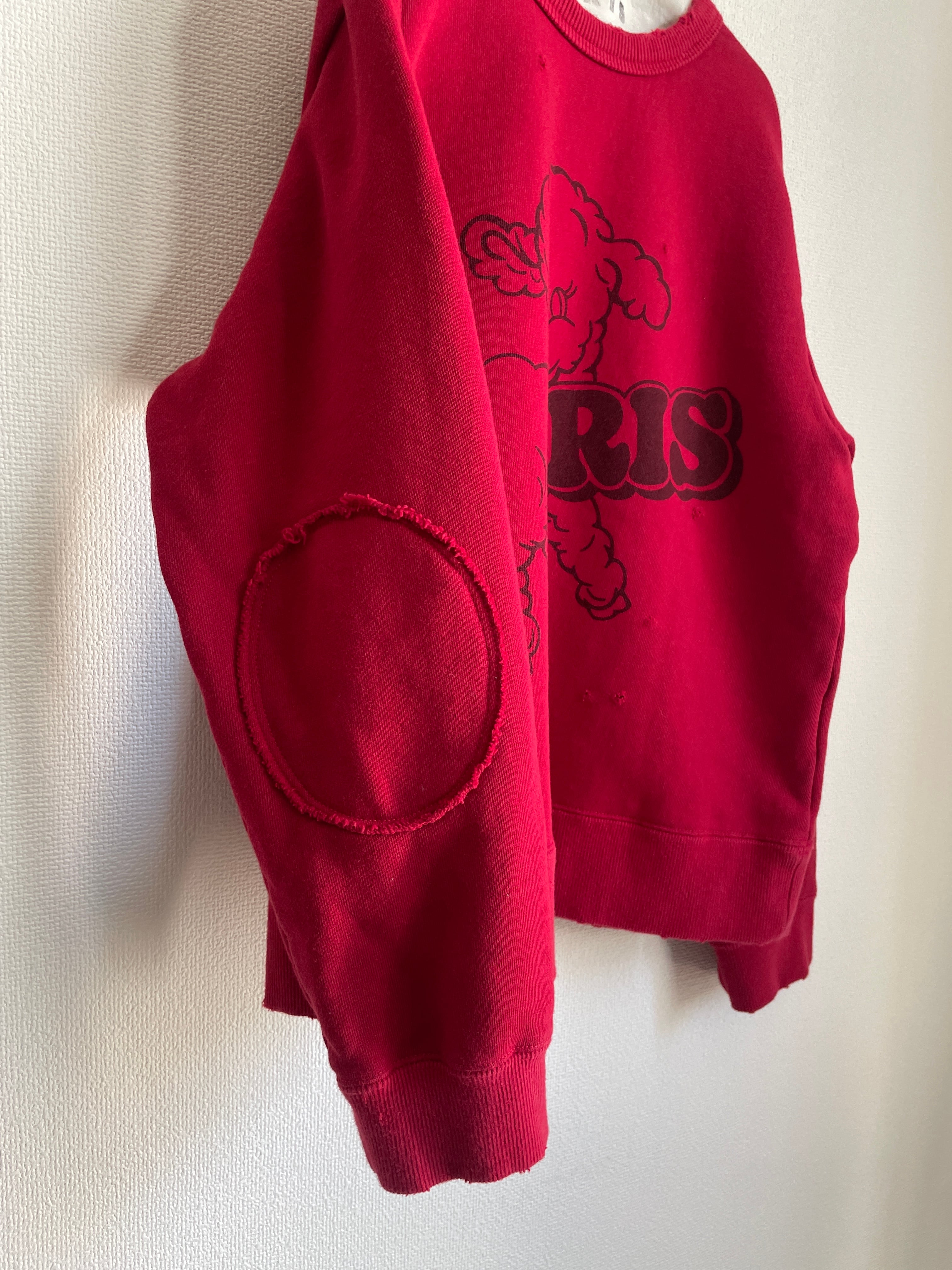 肘にはニーパッチをつけ、プリントやボディにはヴィンテージ加工を施しました。