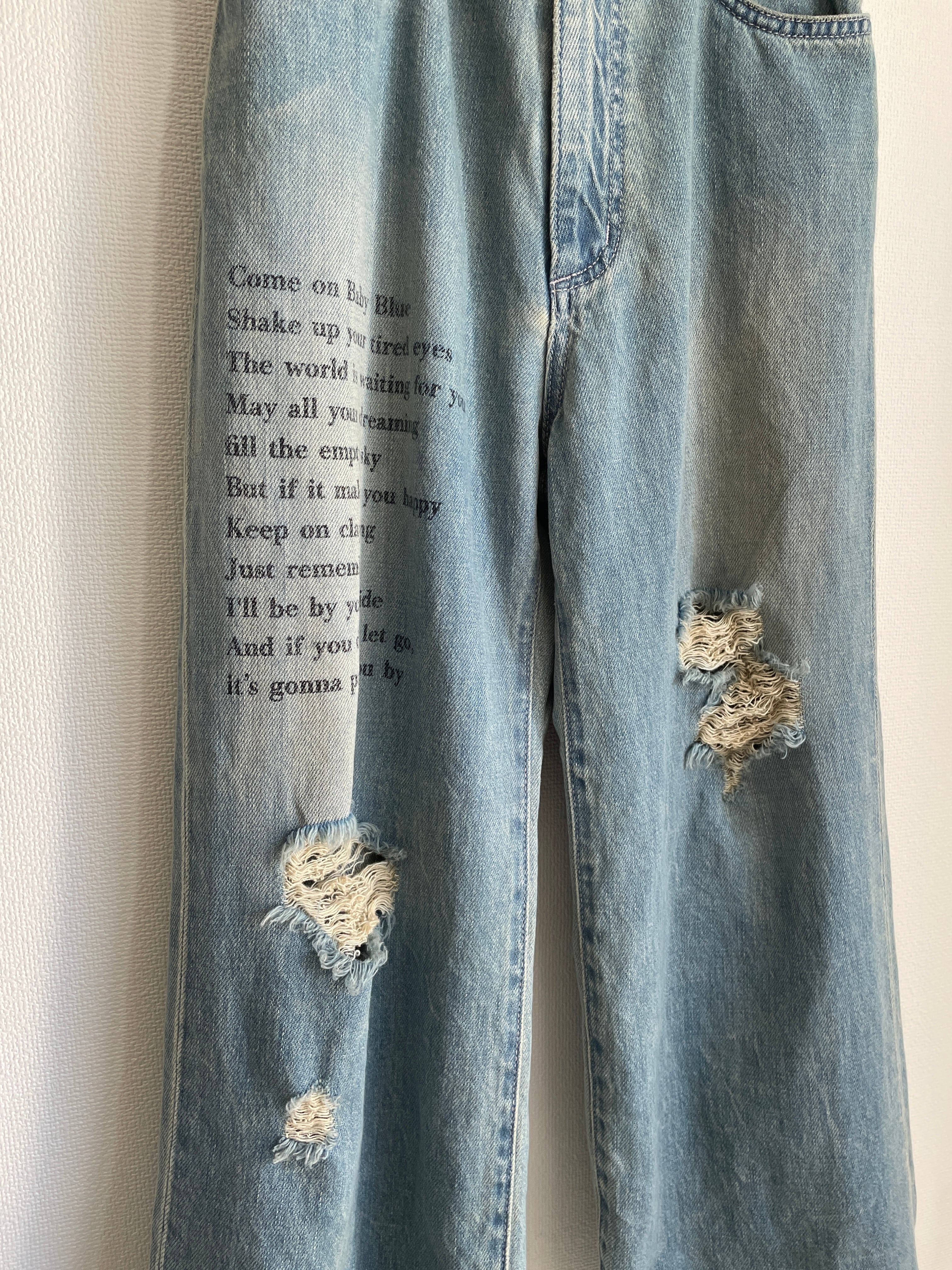 5pocketの程よいワイドシルエットのダメージデニムになります。