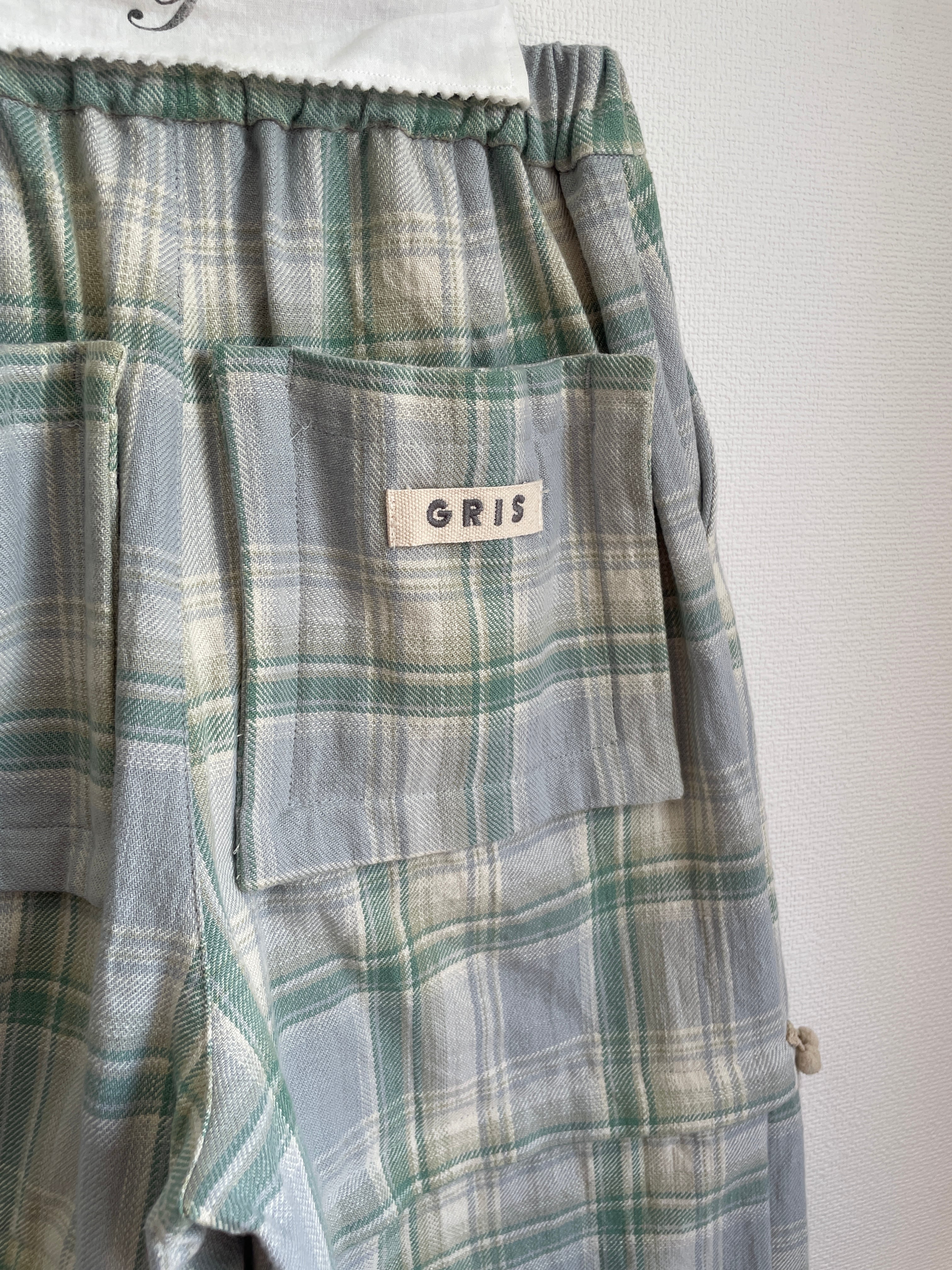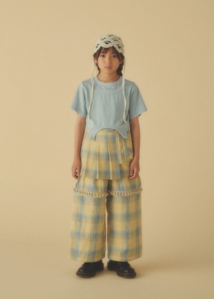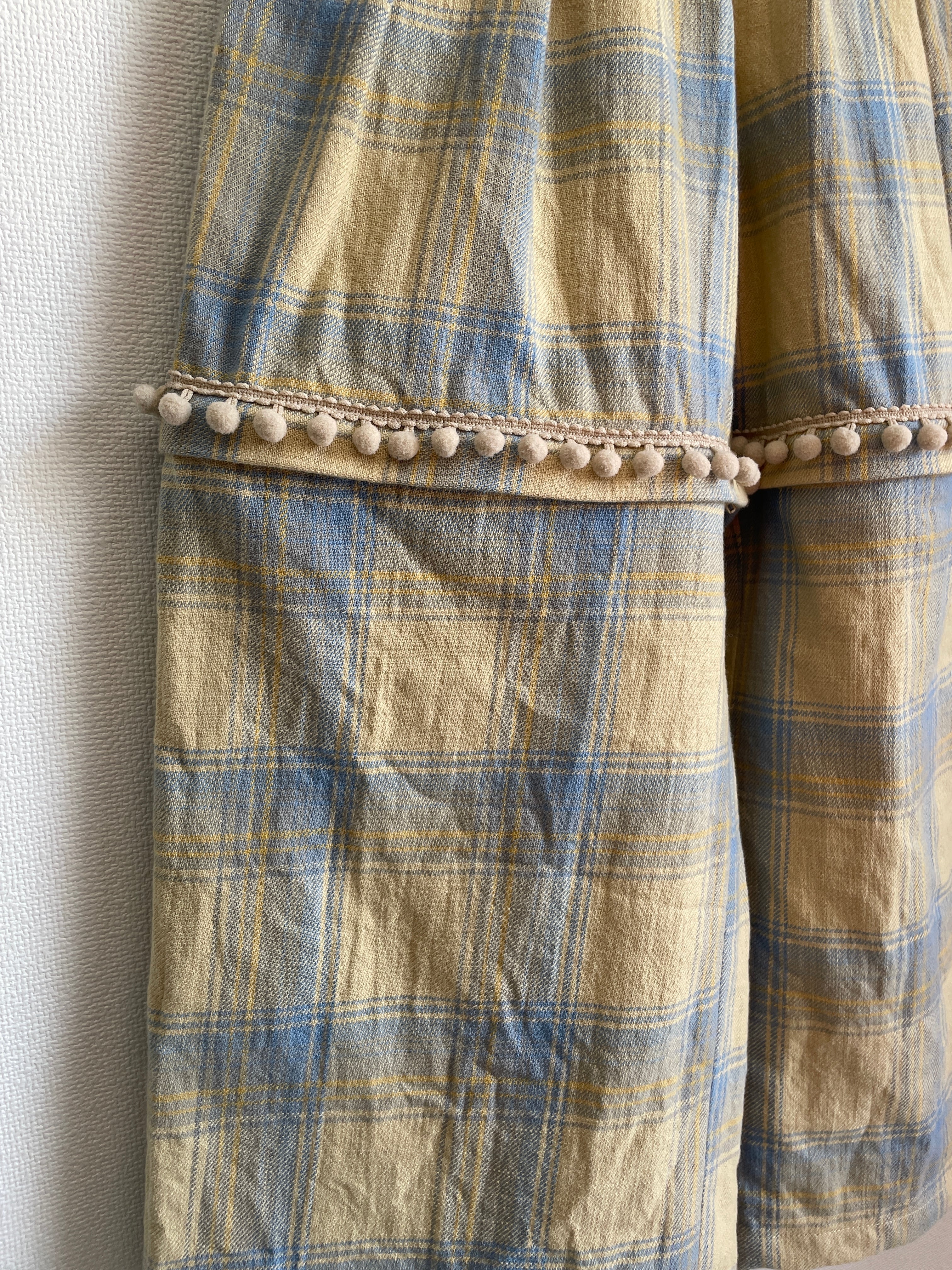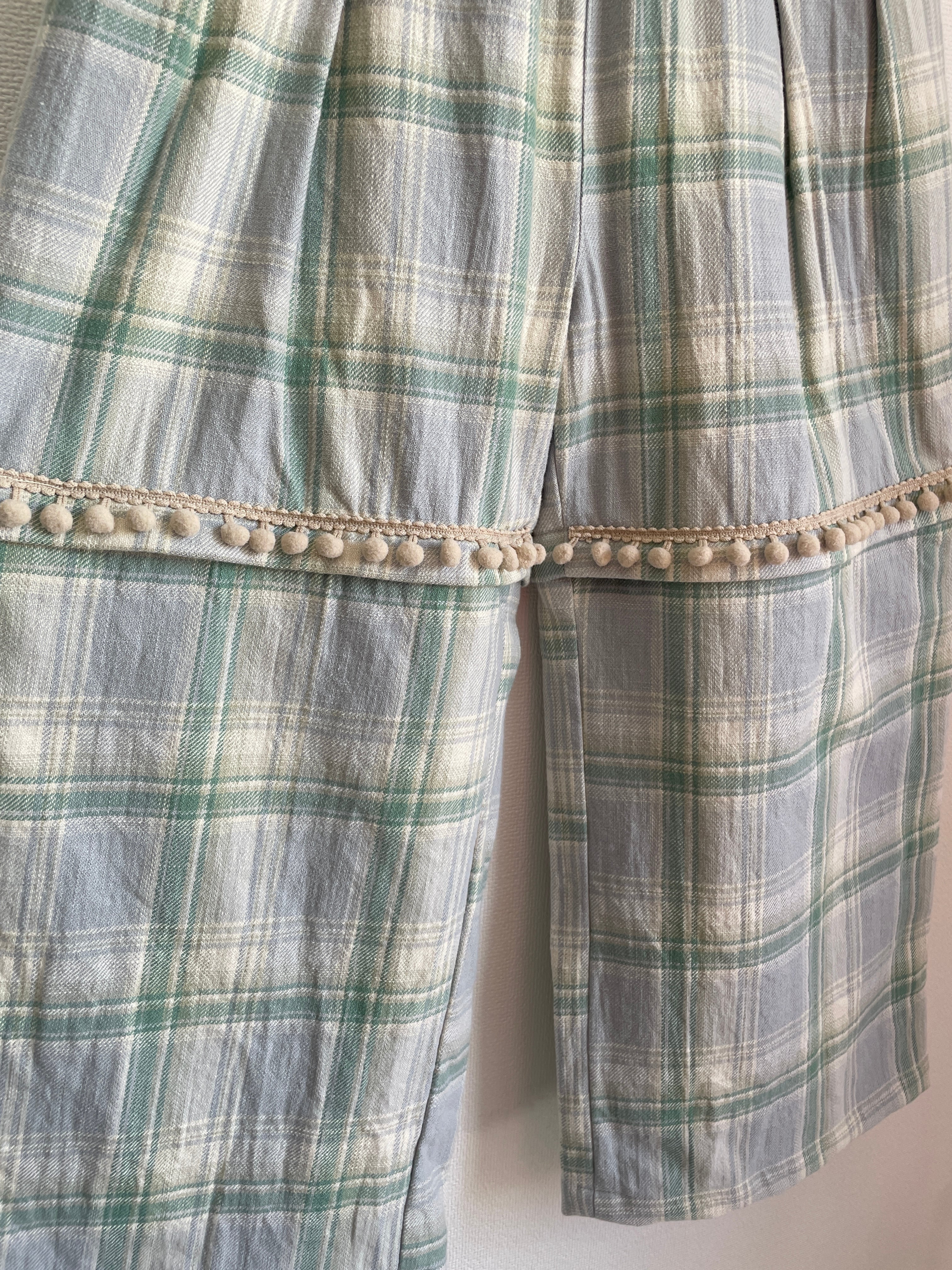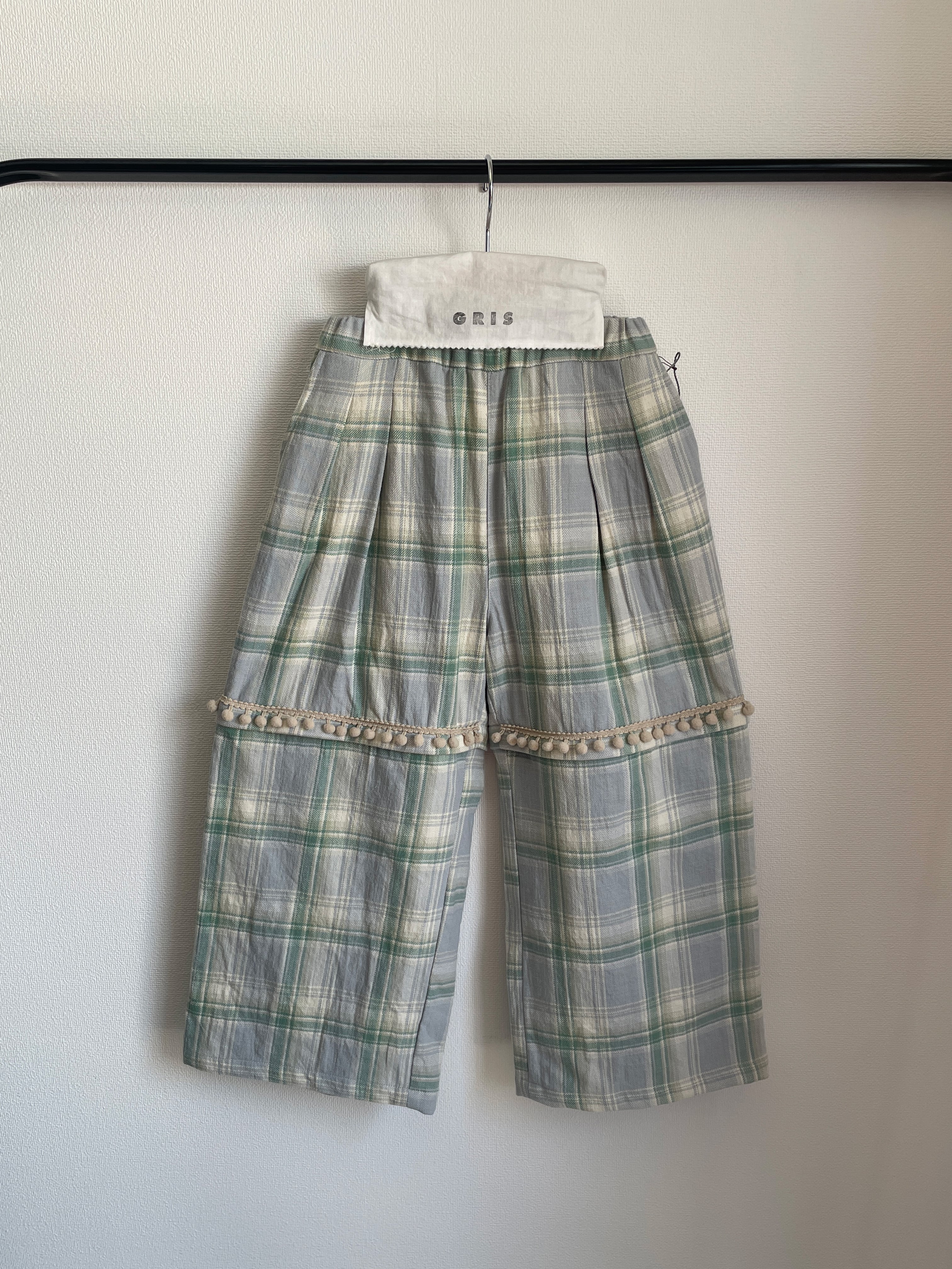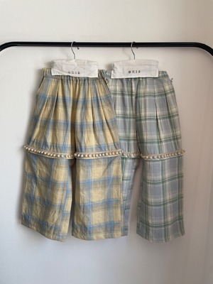 また、切り替え位置のフロント部分にもシャツと同様飾りのボンボンテープを叩き付けております。