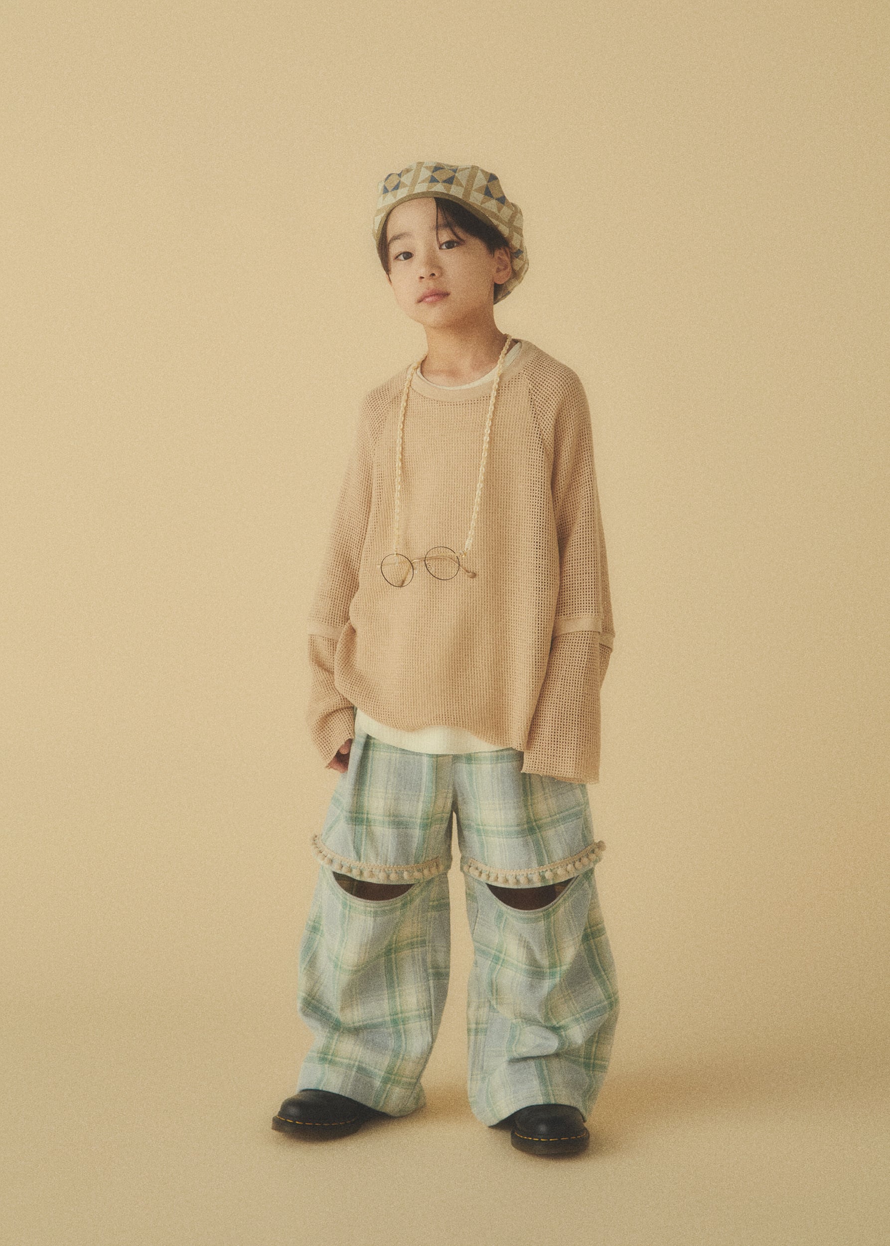 ざっくりとしたルックスの中肉厚の素材感と、柔らかい繊細な色見のギャップのある素材です。