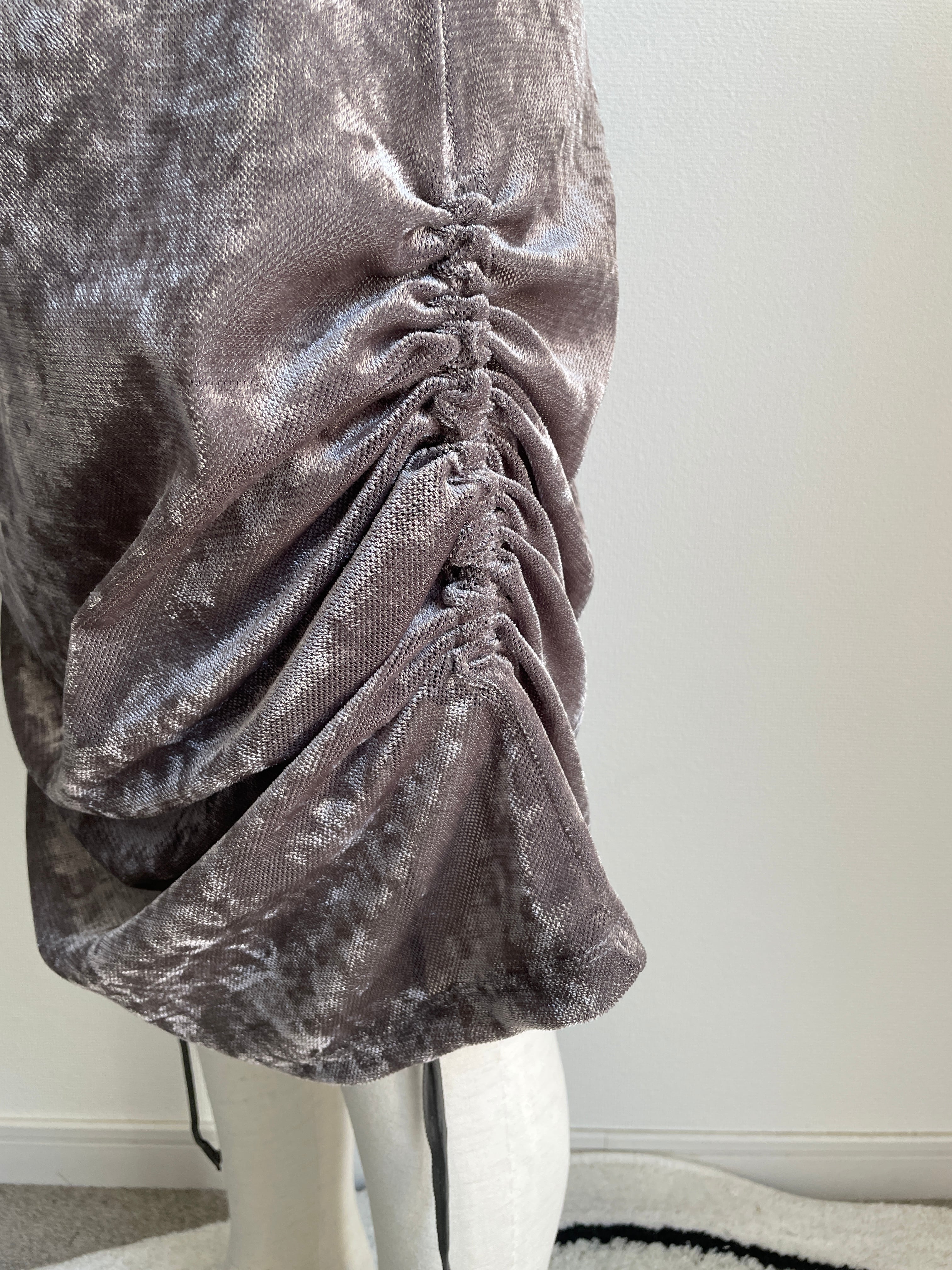 素材の光沢感とシャーリングにした際のドレープの相性がとても良いです。