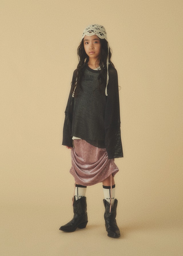 編み組織による程よい透け感を持ち、ソフトな風合いと、なめらかなドレープ性が心地よい着心地を提供します。