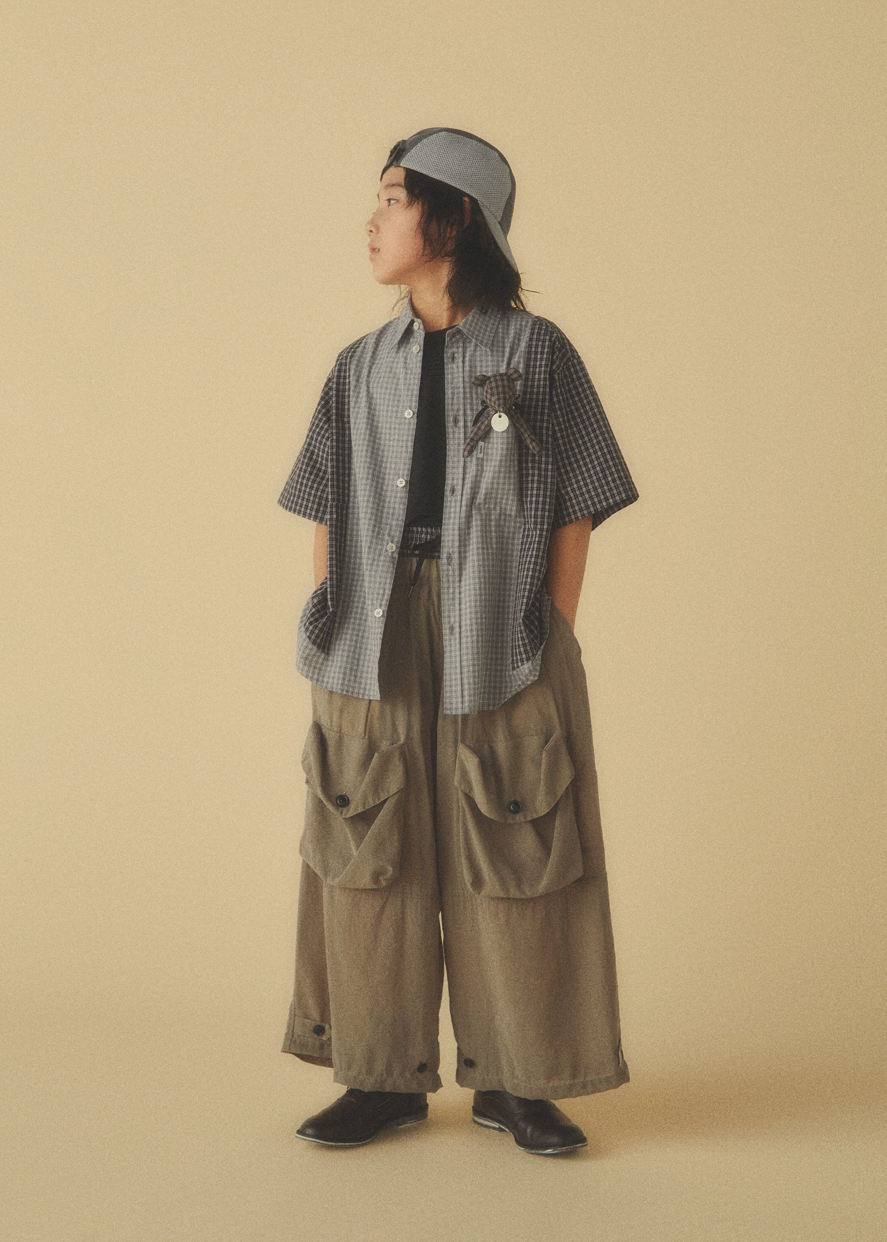チェックのShortsを下に着用し、レイヤーしているようなデザインとなっており、シンプルになりやすい春夏のコーディネートでも1着でコーディネートに厚みを出してくれる1着となっております。
