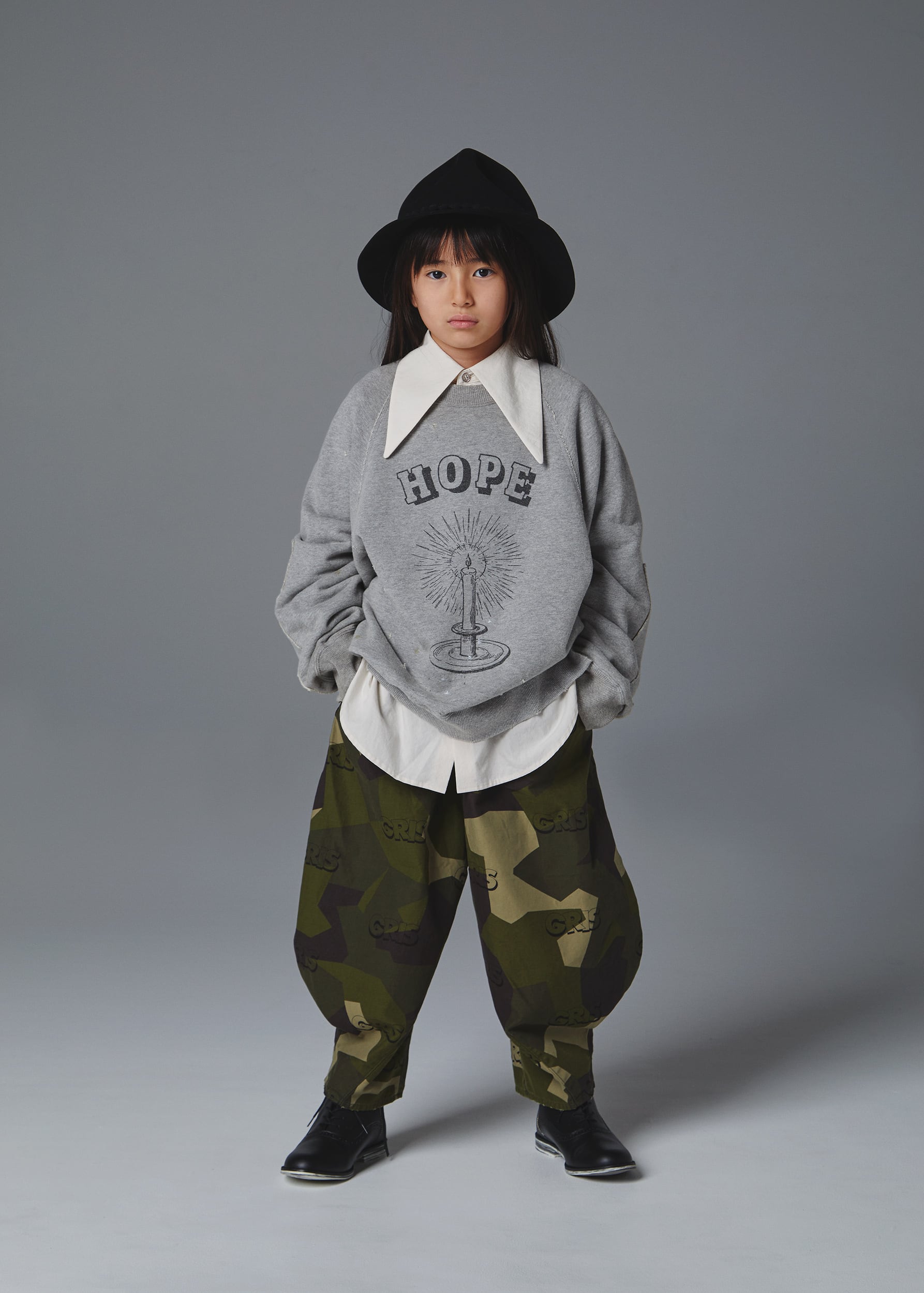 ※(2枚目、3枚目)のLOOKに関しましては1stサンプルのためGRISの総柄が入っておらず、