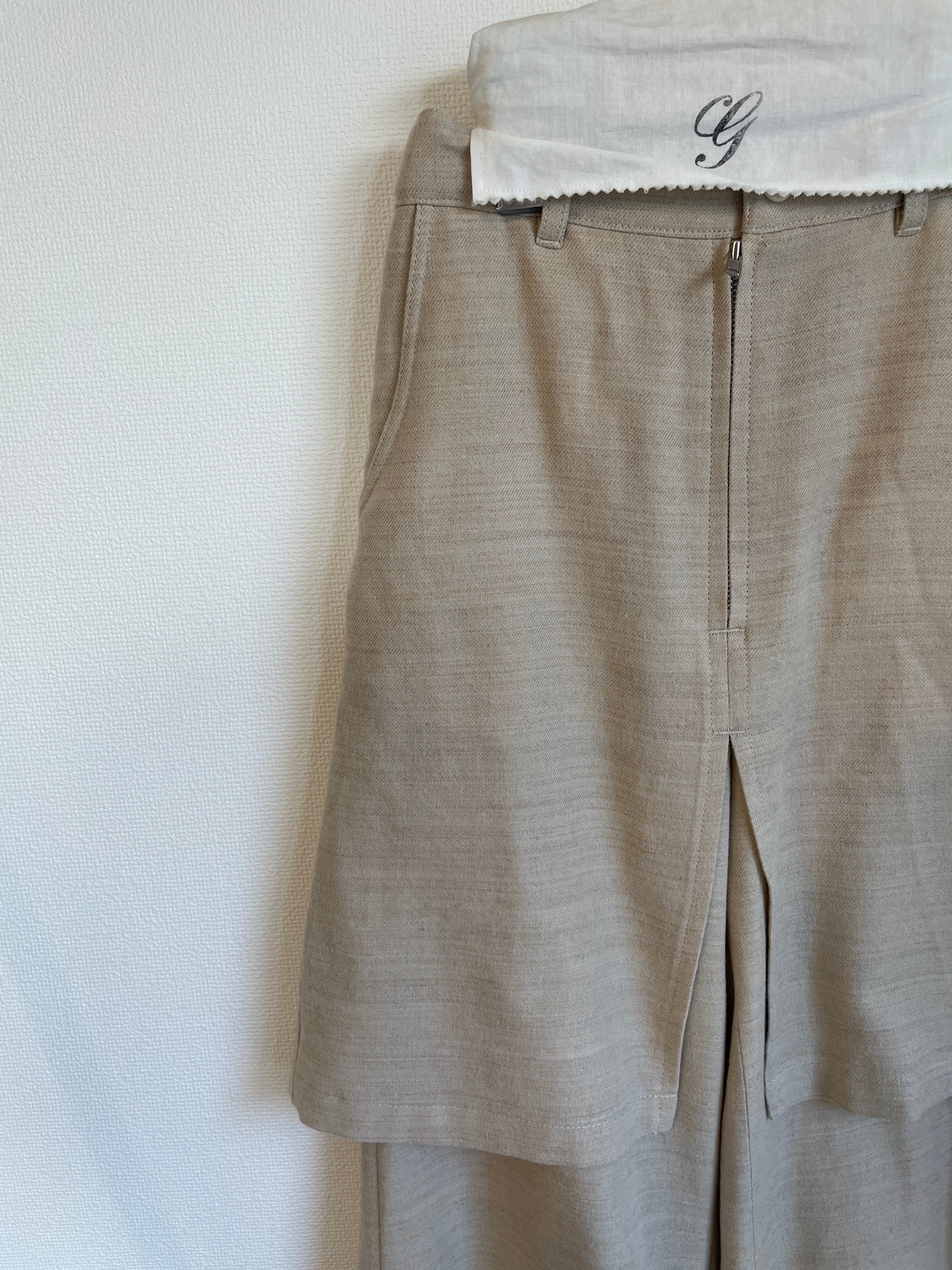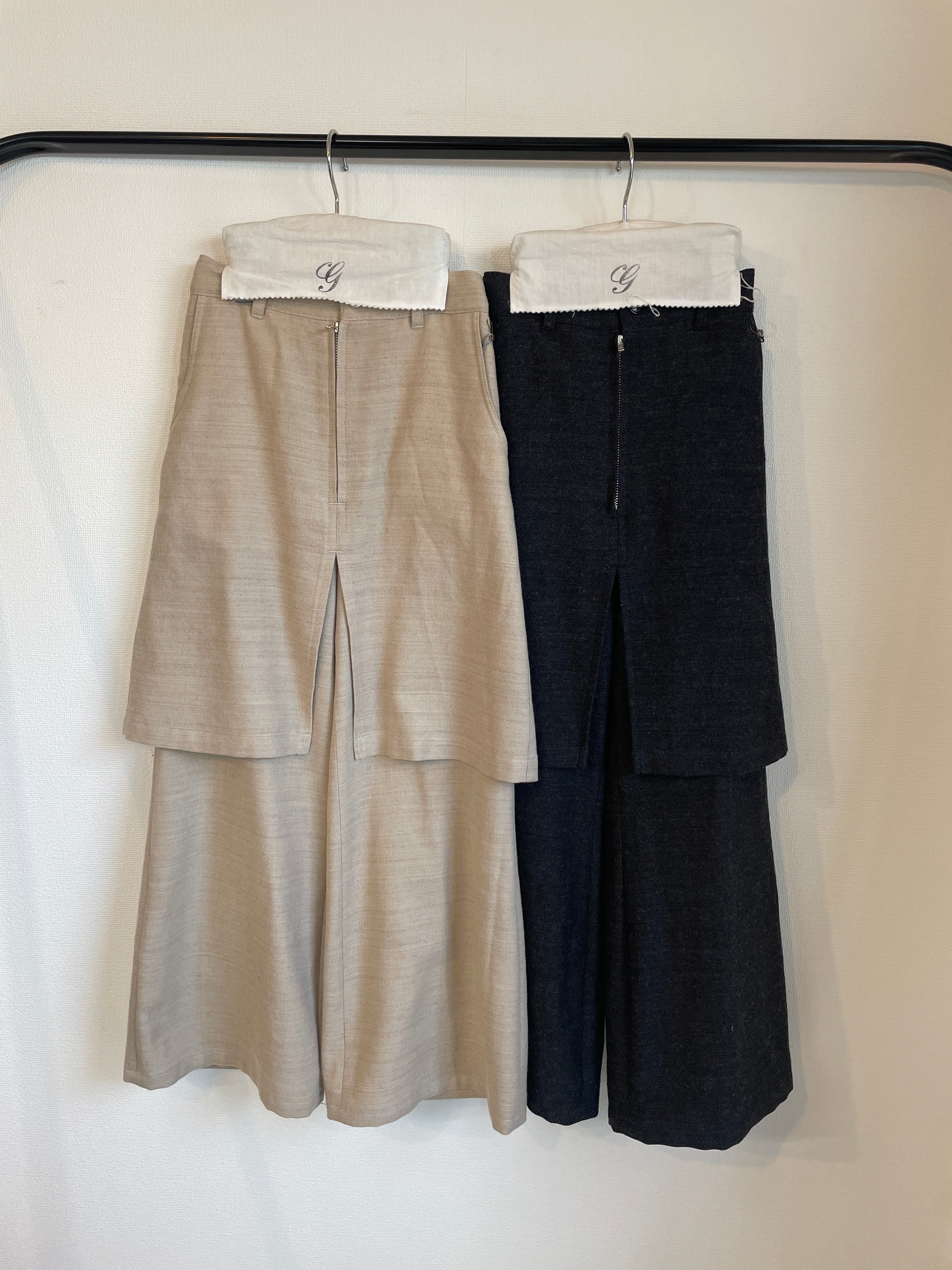 アイテム的にはスカートをレイヤーさせたようなデザインのパンツになります。